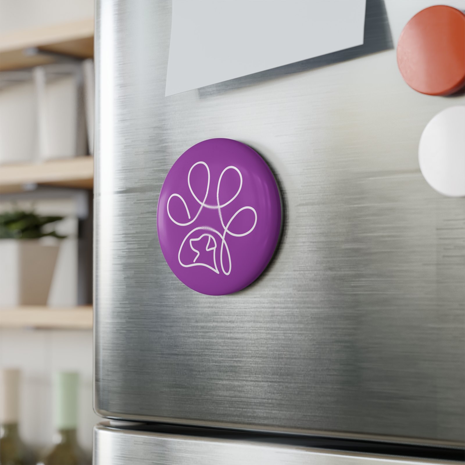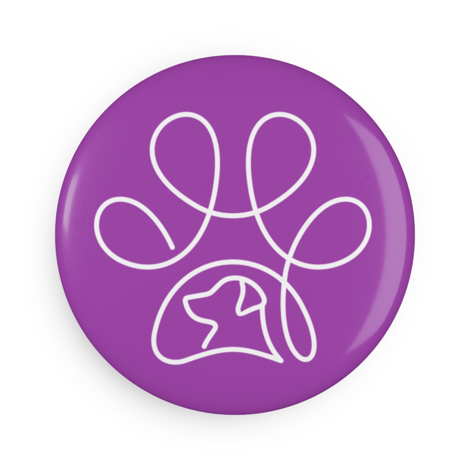 Pawrpose round magnets feature a metal shell front with a magnetic backing. On the front you’ll find a clear mylar/UV cover that protects against fading and scratches.